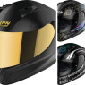The helmet is supplied with a clear visor. The Golden, Silver and Dark Editions also come with the visor shown in the pictures (gold, silver or heavily tinted).