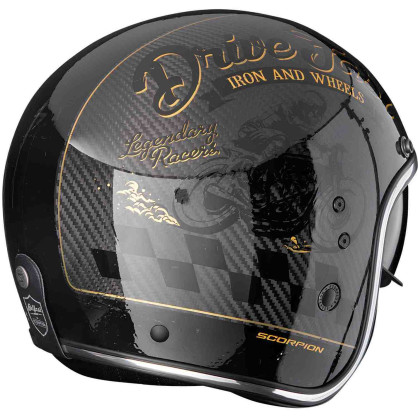 The Belfast Evo Carbon from Scorpion is an upgraded version of the popular retro helmet Belfast Evo. With its handcrafted carbon shell, this helmet sets new standards in terms of safety and lightness. The carbon shell of the Belfast Evo Carbon is not only extremely robust and durable, but also incredibly light. This makes wearing this helmet a real pleasure - you can hardly feel it on your head.But the new Scorpion helmet doesn't just impress with its materials: it also scores points in terms of design. The retro look was retained, but modern elements were added. The helmet now has an integrated sun visor and an improved ventilation system for maximum comfort while driving.
