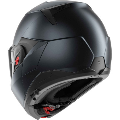 The Shark OXO flip-up modular motorcycle helmet is equipped with a state-of-the-art aerodynamic design that minimises drag and reduces turbulence. This ensures a smooth and stable ride, whether the helmet is used in the full-face or jet position.